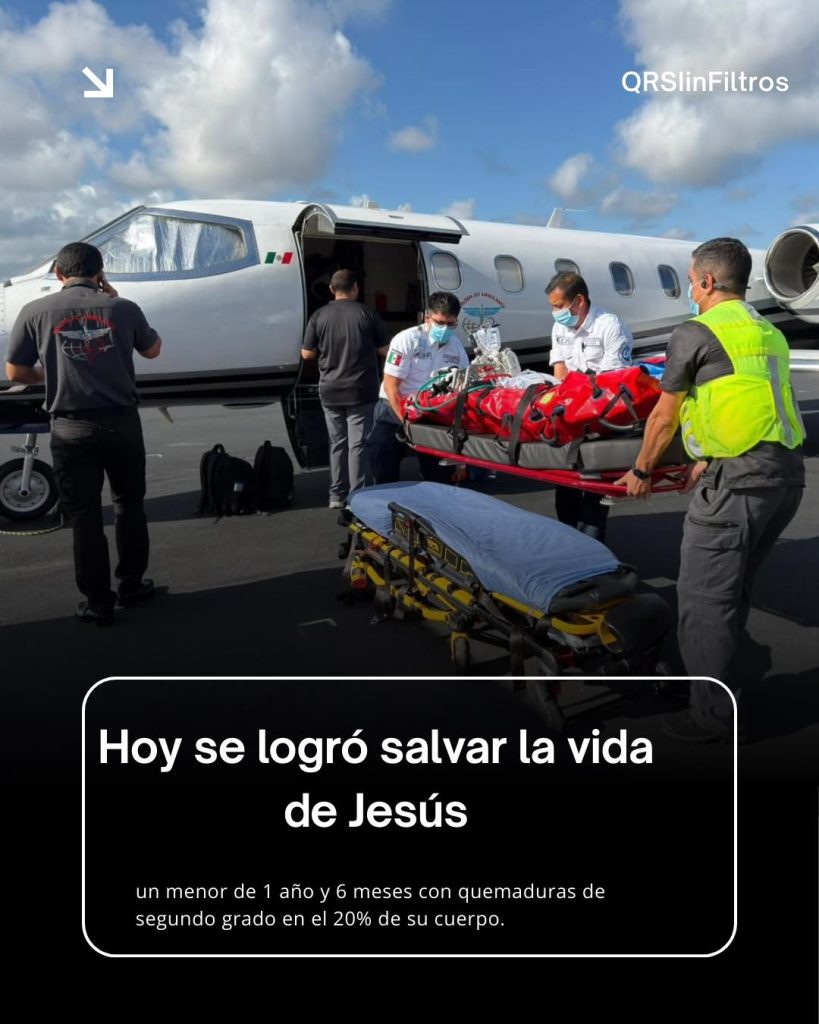 Trasladan de emergencia a menor con quemaduras graves de Cancún a CDMX para atención especializada
